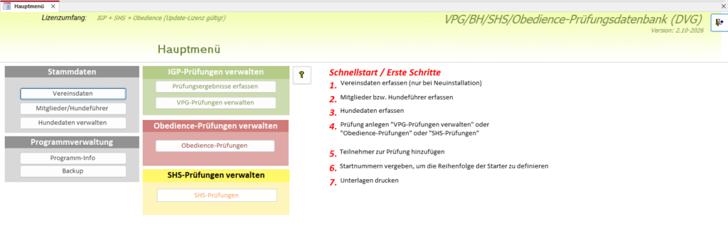 Die Prüfungsdatenbank ermöglichst die Verwaltung von Hundesportprüfungen im DVG für IGP-Prüfungen, Begleithundprüfungen, Spürhundsportprüfungen und Obedience-Prüfungen.